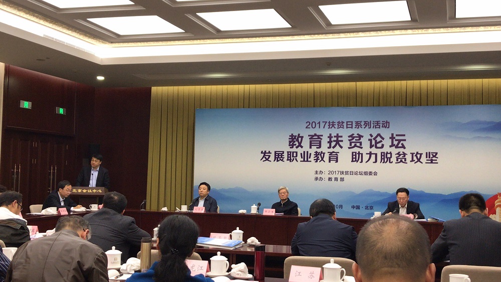 2017年10月9日,2017減貧與發(fā)展高層論壇教育扶貧論壇在北京會(huì )議中心舉辦,教育部副部長(cháng)孫堯、國務(wù)院扶貧辦副主任洪天云作主旨講話(huà)。按照教育部辦公廳安排,黃剛總經(jīng)理在論壇上作了《調動(dòng)社會(huì )資源,助力職教扶貧》的發(fā)言。